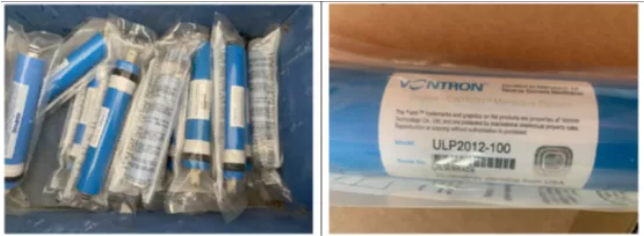 现场查处假冒反渗透工业膜数百支以及少量家用膜,数条制假生产线。经现场鉴定后,出具了《产品(辨认)鉴定表》,确认产品为假冒商标产品,目前执法机关已勒令涉嫌侵权公司关停假冒产品生产设备。