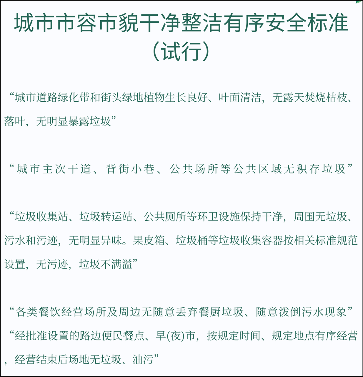住建部刚刚新发布的《城市市容市貌干净整洁有序安全标准(试行)》详细规定了,什么才算得上“干净、整洁”的市容。